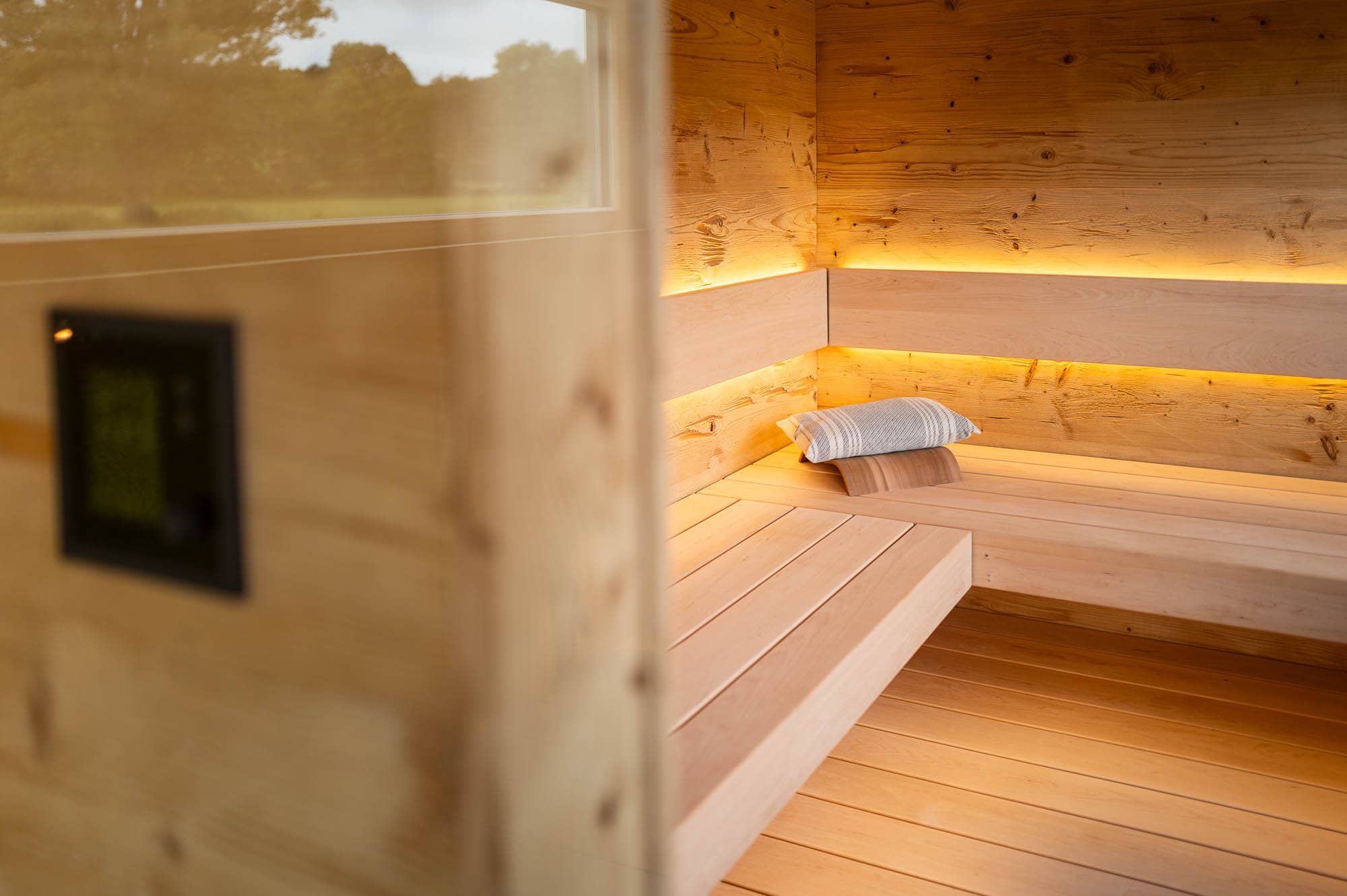 Unsere maßgefertigten Saunas verbinden Handwerkskunst und Individualität mit Funktionalität und verwandeln Ihren Garten in ein persönliches Wellness-Paradies.