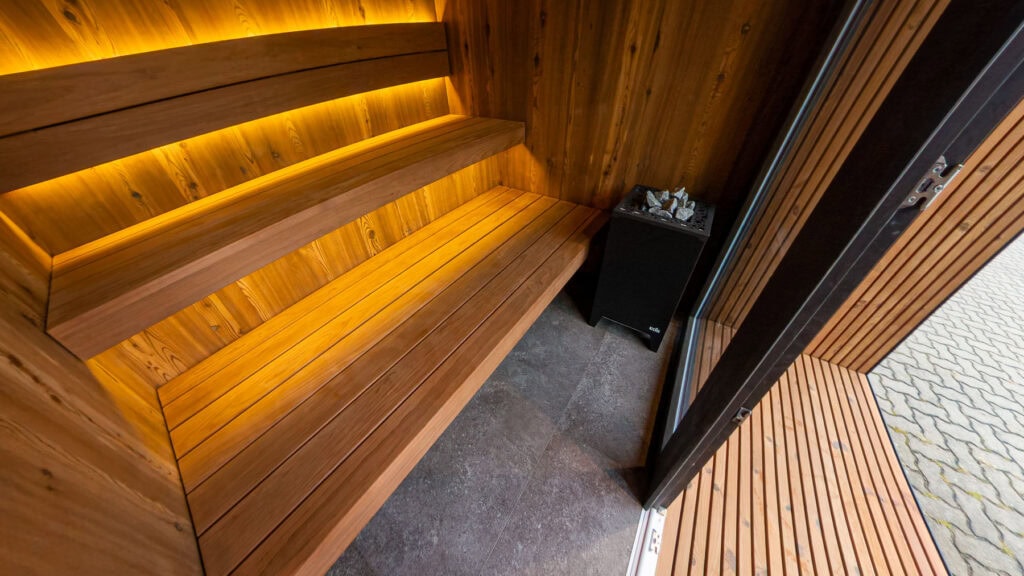 Erleben Sie die perfekte Kombination aus Erholung und Design in Ihrem eigenen Garten. Unsere Außensauna ist nicht nur ein Ort der Entspannung, sondern auch ein Schmuckstück für Ihr Zuhause. Genießen Sie das traditionelle Saunaerlebnis mit der frischen Brise aus Ihrem eigenen Garten – ideal für erholsame Stunden zu jeder Jahreszeit. Lassen Sie sich überzeugen von der Funktionalität und Ästhetik, die Ihre Wohlfühloase in ein einzigartiges Retreat verwandelt.
