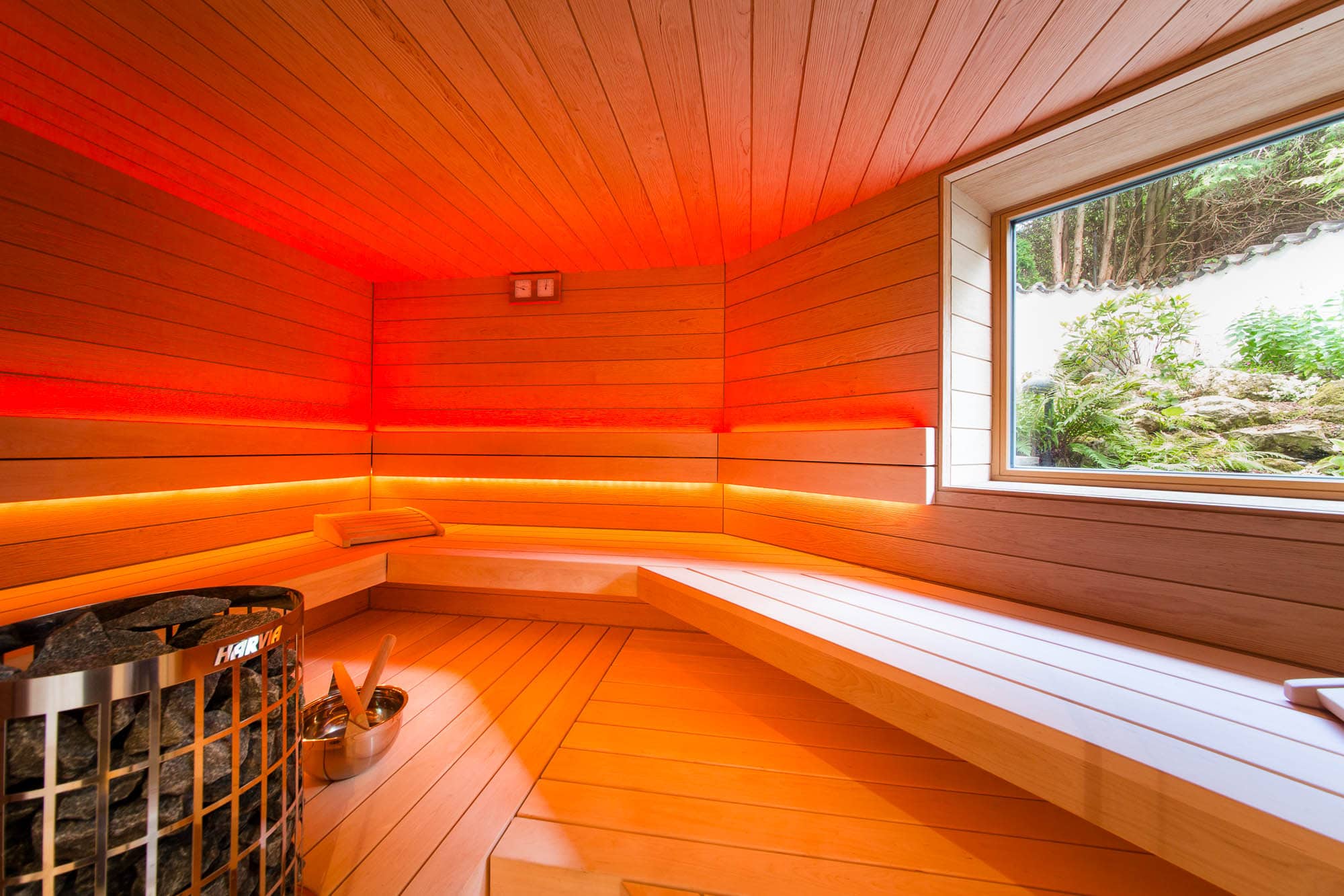 Unsere neue Sauna ist ein Traum! Der Blick in den Garten während des Saunagangs ist einfach wunderbar.